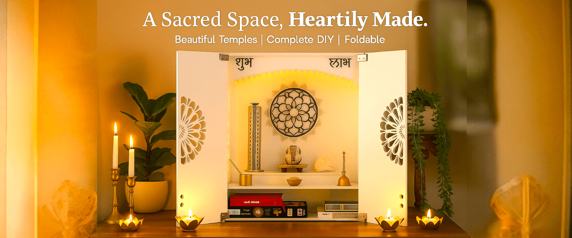 Heartily Unity Wooden Wall-Mounted Pooja Mandir for Home Features Versatile Praying Unit for All Religions: Use this elegant wooden wall-mounted/table...