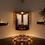 3. Corner Wall-Mounted Wooden Pooja Mandir