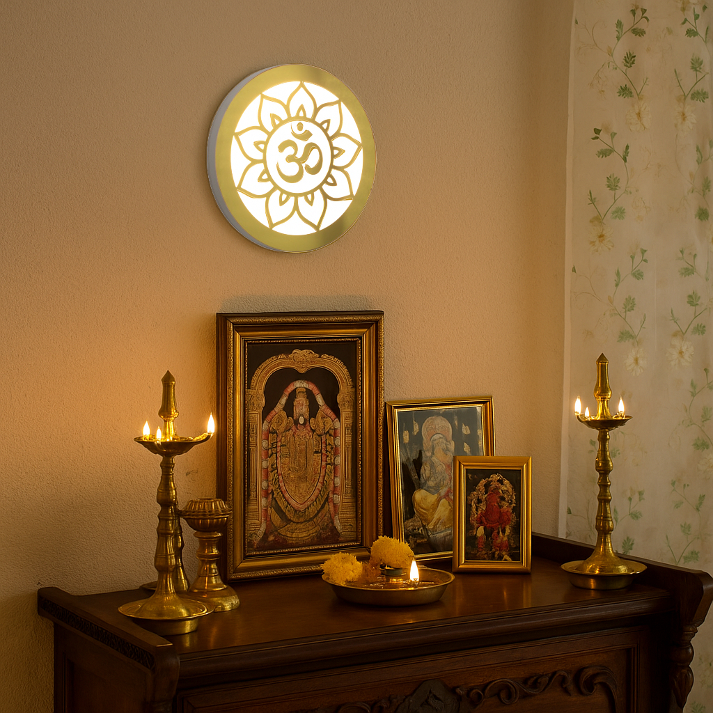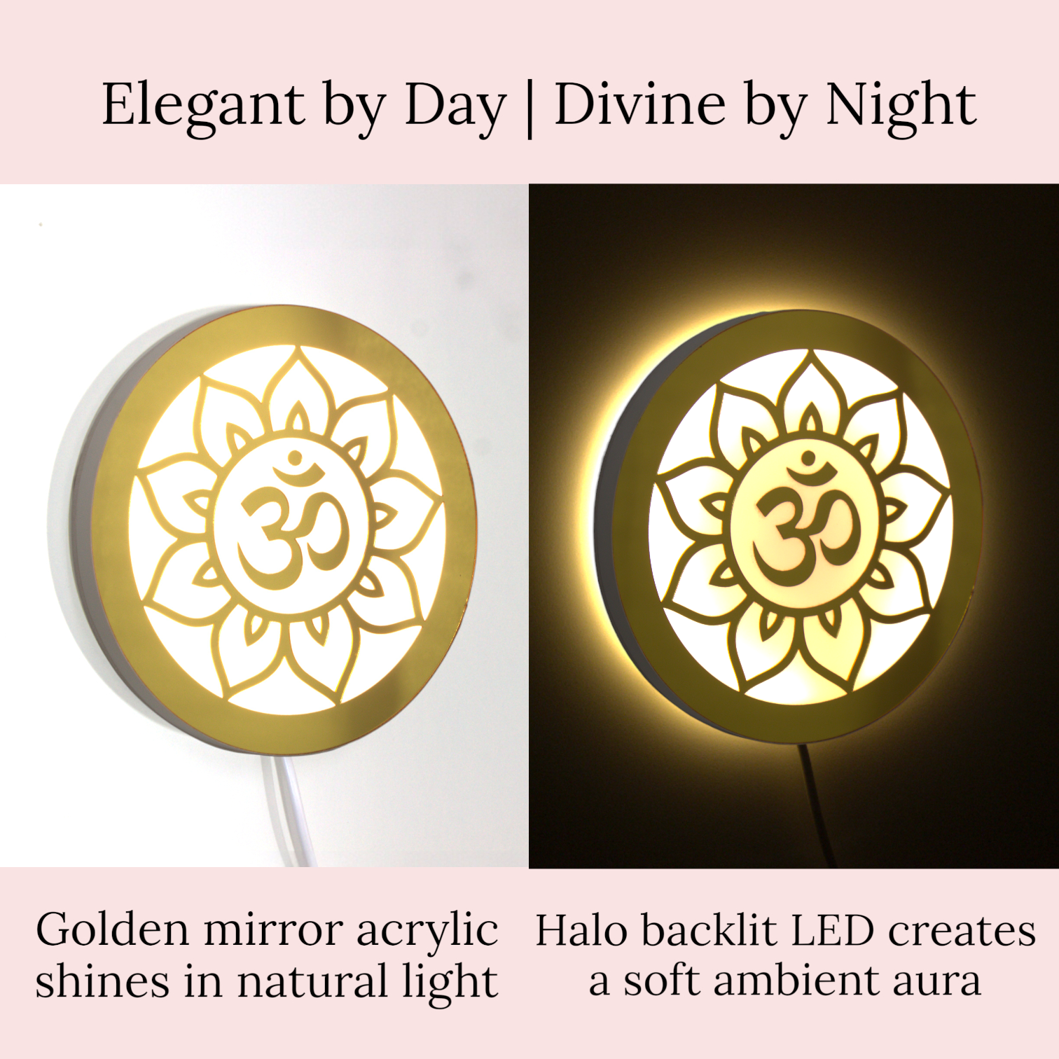 Heartily 19 cm Beautiful Mandala OM LED Wall Decor Art for Pooja room, Yoga, Living room, home decor and office Wall | Lightweight Ready-to-Hang Decorative Panel |